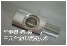 华炬新产品研究所技术咨询委员会科研人员现推荐一项镍-钨-硼三元合金电镀液技术配方及方法,该技术产品可以在碳钢、合金钢、铜及其合金等基体材料上电镀得到光亮致密的镍-钨-硼三元合金镀层,该电镀液腐蚀性小,稳定性好,深镀能力和分散能力好,镀层与基体结合力好,能耐稀酸、碱、盐及硫化氢,耐磨性能优良,整个电镀过程清洁生产,符合环保要求,镀液对设备及人体伤害小,符合可持续生产的要求,现将该镍-钨-硼三元合金电镀液技术配方及配制方法实例介绍如下供研究参考:(841133 131242)