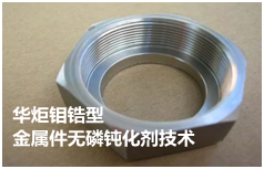 华炬新产品研究所技术咨询委员会科研人员现推荐一项钼锆型金属件无磷钝化剂技术配方及方法,该技术钼锆型无磷钝化剂形成的钝化膜层结构细致,附着力牢固。钝化处理时操作简单、能耗低,由于钝化剂不含磷,更加环保,且各成分无毒害无污染,节能环保,安全可靠,可作为钢铁表面喷涂前钝化的处理,现将该钼锆型金属件无磷钝化剂技术配方及方法及实例介绍如下供研究参考:(841133 141649)