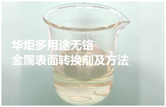 华炬新产品研究所技术咨询委员会科研人员现推荐一项多用途无铬金属表面转换剂及方法,该技术具有以下特点:(1)转换剂为不含铬的绿色环保型产品;(2)转换剂可以对钢、锌、铝及其合金等多种材料进行表面处理;(3)转换剂所生成的转换涂层符合美国空军规范MIL-C-5541 B中不同方法和级别的要求,具有强的结合力和优异的抗腐蚀性能;(4)转换剂适用于卷材机组连续生产、辊筒涂覆、浸渍、喷淋等多种生产工艺的要求;(5)转换剂的转化时间短、成本低、效率高,现将该多用途无铬金属表面转换剂及方法及实例介绍如下供研究参考:(611311 571452)