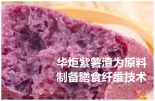 华炬新产品研究所技术咨询委员会科研人员现推荐一项紫薯渣为原料制备膳食纤维技术方法,该技术与现有技术相比,经过提取花青素和淀粉后的紫薯渣为原料制备紫薯膳食纤维,不仅成本低,而且所得不溶性膳食纤维产品中不溶性膳食纤维含量在73.1%以上,其中纤维素含量在66.7%以上,得率在61.2%以上;所得可溶性膳食纤维产品中可溶性膳食纤维含量在85.6%以上,果胶含量在66.9%以上,得率在17.7%以上。该方法在有效地利用废弃物、实现资源再生利用的同时,还避免了残渣直接丢弃对环境造成的污染,现将该紫薯渣为原料制备膳食纤维技术方法及实例介绍如下供研究参考:(211211 427684)