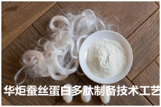 蚕丝蛋白又名:丝素蛋白,是从蚕丝中提取的天然高分子纤维蛋白,含量约占蚕丝的70%~80%,含有18种氨基酸,其中甘氨酸(gly)、丙氨酸(ala)和丝氨酸(ser)约占总组成的80%以上。蚕丝蛋白质在化妆品领域被开发利用。由于蚕丝蛋白质与人体皮肤角朊蛋白质极相似,两者有极好的亲和性;由于蚕丝蛋白质分子特殊的化学结构,所以蚕丝蛋白质具有良好的吸湿性和散湿性能,能适应周围环境的变化,起天然调湿、改善人体皮肤营养、防止皮肤起皱、增强皮肤细胞活力和弹性、促进细胞新陈代谢及维持皮肤正常生理状态的作用;蚕丝蛋白质还具有吸收紫外线,防止日光辐射对人体皮肤损害的作用,所以蚕丝蛋白质已被广泛用于美容化妆品的优良添加剂。然而,蚕丝蛋白是具有66个氨基酸的蛋白质,分子量较大,往往会引起过敏反应,导致皮肤瘙痒,从而无法起到应有的护肤作用。小分子蛋白质或多肽就不容易诱发免疫变态反应。但是,小分子蛋白质往往会失去原形蛋白质的功效。因此,如何才能让分解后的蚕丝蛋白小分子既有原蛋白质的功效,且不引起过敏,一直是一个难以协调的问题。