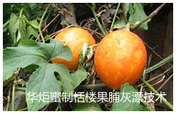 现有的栝楼用途范围窄,除用于中药外深加工产品少,用于加工成栝楼脯可实现对栝楼原料的综合利用,且便于储存,提高其经济价值。栝楼果脯的加工工艺:选料→刨皮→刺孔→灰漂→撩坯→煨糖→收锅→起货→粉糖→包装的加工工艺流程,蜜制栝楼果脯产品色泽浅白,口感细腻、脆嫩,香甜可口,栝楼味浓厚,具有栝楼特有的风味,产品富含营养、风味独特,还具有润肺止咳,利咽降火,滋补养颜等多种保健功能。操作简单,使用方便,是一种营养健康的绿色食品。在蜜制栝楼果脯过程中灰漂技术是一项重要环节,华炬科技新产品研究所技术咨询委员会科研人员现推荐一项蜜制栝楼果脯灰漂技术配方,现将该蜜制栝楼果脯灰漂技术配方介绍如下供研究参考:(441271 521575)