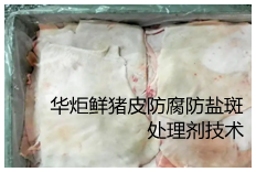 鲜猪皮处理剂用于皮革行业中对生皮的处理,需求量巨大,因此,需要研究开发一款性价比高的鲜皮处理剂。华炬新产品研究所技术咨询委员会科研人员现推荐一项鲜猪皮防腐防盐斑处理剂技术配方,该技术产品的使用对鲜猪皮显著的具有防霉、防腐、防菌、防盐斑及防虫的作用。具有使用量少、方法简单、无毒无害、成本低、适合大规模生产应用的特点。现将该鲜猪皮防腐防盐斑处理剂技术配方及实例介绍如下供研究参考:(311211 344242)