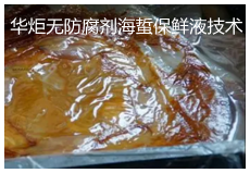 海蜇是一种腔肠动物,也是人们非常喜爱的食品,但很难保存,一般在出海24至72小时就溶化掉了,所以内地根本见不到鲜海蜇,沿海地区在非海蜇捕捞季节也吃不到鲜海蜇。目前人们还是用传统的,古老的矾盐法制海蜇皮干品,大约每12斤鲜海蜇能生产一斤干品,而且其营养成份远不如鲜海蜇。华炬新产品研究所技术咨询委员会科研人员现推荐一项无防腐剂海蜇保鲜液技术配方及方法,该技术产品不含防腐剂,保鲜期长,保鲜效果好,保鲜期12个月,保鲜质量好,适合海蜇商品化生产需要,现将该无防腐剂海蜇保鲜液技术配方及方法实例介绍如下供研究参考:(341541 223585)