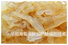 因此,国内外科研机构、大专院校都在研究开发能延长海蜇的保鲜期且铝残留量低的海蜇的保鲜方法非常有必要,华炬新产品研究所技术咨询委员会科研人员现推荐一项海蜇保鲜盐矾处理剂技术配方,该技术产品不含任何合成防腐剂和漂白剂,环保健康,可有效延长海蜇保鲜期,最大限度的保持了海蜇原味,对人体无任何损害和不良反映,现将该海蜇保鲜盐矾处理剂技术配方介绍如下供研究参考:(341541 223534)