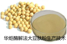 华炬新产品研究所技术咨询委员会科研人员现推荐一项酶解法大豆肽粉生产技术工艺,该技术解决了高脂肪的大豆蛋白质的降解问题,可将脱脂大豆粕中的各种营养成分降解,使其生成能为人体直接迅速吸收的、营养丰富的大豆肽粉,具有增强人体免疫力、抗衰老、抗氧化、恢复疲劳等功能,大大提高了人体食用蛋白质的输送量和消化吸收率。蛋白质降解为肽的转化率高,可达80% 以上,现将该酶解法大豆肽粉生产技术工艺及实例介绍如下供研究参考:(211211 315698)