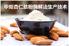 华炬科技新产品研究所技术咨询委员会科研人员现推荐一项杏仁肽粉酶解法生产技术工艺,该技术解决了高脂肪的杏仁蛋白质的降解问题,可将脱脂杏仁粕中的各种营养成分降解,使其生成能为人体直接迅速吸收的、营养丰富的杏仁肽粉,具有增强人体免疫力、抗衰老、抗氧化、恢复疲劳等功能,大大提高了人体食用蛋白质的输送量和消化吸收率。蛋白质降解为肽的转化率高,可达80% 以上,现将该杏仁肽粉酶解法生产技术工艺及实例介绍如下供研究参考:(241241 235314)