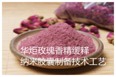 玫瑰是香料用芳香化合物中较为重要和应用广泛的一种食用香料, 因它具有柔和、愉快而持久的玫瑰香气,而广泛用于各种日用香精、食用香精和烟用香精中。但该物质是有机小分子, 在加工和贮藏过程中容易挥发, 失去其玫瑰香气。香精缓释纳米胶囊化技术可将液体香精转化为纳米级的均一固体粉末,极大地提高香精的热稳定性、光稳定性及抗氧化性,防止有效成分的损失,使香精保持丰满精致的香味,并提高香精的缓释性,方便香精的运输及储存。