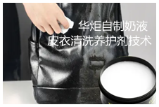 华炬新产品研究所技术咨询委员会科研人员现推荐一项自制奶液皮衣清洗养护剂技术配方,该技术产品它可以迅速去除皮衣上的污垢,并同时可通过皮表毛孔浸透至皮层内,滋润皮纤维,使皮质脂肪饱和,皮质透气流畅,手感柔软,并且有对皮衣有防干、防裂、防皱、防僵硬的优点,对已经产生僵硬、起皱的皮衣具有恢复至原有柔软度的优点,现将该自制奶液皮衣清洗养护剂技术配方及实例介绍如下供研究参考:(571311 557575)