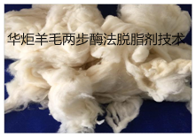 华炬新产品研究所技术咨询委员会科研人员现推荐一项羊毛两步酶法脱脂剂技术配方及工艺,该技术工艺将无机复合脱脂剂脱脂和生物酶脱脂相互结合,复合脱脂剂脱脂时在温度较高的碱性条件下进行,能够有效脱脂;生物酶脱脂则通过复合酶,能对动物毛进行更深入的脱脂,脱脂效果更为优化和深入;该工艺方法的工艺简单,脱脂效果好,对环境的威胁小。现将该羊毛两步酶法脱脂剂技术配方及工艺实施例介绍如下供研究参考:(311271 221256)