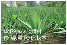 随着深加工技术的不断提高和综合开发力度的加大,剑麻的经济价值已进一步显现,剑麻除抽取纤维外,其麻渣、剑麻鲜叶片经过机械脱胶后的副产品和液汁等副产品也有广泛的开发利用价值。麻渣发酵后可蒸制酒精,提取草酸、果胶、硬蜡、麻渣饲料青储等。华炬新产品研究所技术咨询委员会科研人员现推荐一项剑麻麻渣饲料青储防霉添加剂技术配方,该技术产品的使用使得剑麻麻渣无害化、并可用于生产饲料,使剑麻麻渣得到充分的利用。该技术方法采取简单、实用、有效的剑麻麻渣饲料青储,实现麻渣饲料化,从牲畜饮食营养成分角度来调整青储技术,生产的麻渣饲料可满足牲畜的营养需求,减少饲料成本开支,提高剑麻利用率。现将该剑麻麻渣饲料青储防霉添加剂技术配方介绍如下供研究参考:(211241 443535)