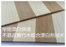 华炬新产品研究所技术咨询委员会科研人员现推荐一项漂白快速不易返黄竹木组合漂白剂技术配方,该技术产品漂白效果显著且稳定,漂白剂能够很好的渗透 到竹木内部,使得竹木颜色整体淡化,竹面表面白度高且色泽均匀, 经打磨等工序处理后仍能保持漂白后白度,此外,配方中添加的山梨酸能够有效防治竹木霉变,漂白后的竹木制品不易返黄、霉变、开裂,提高了竹木制品的整体品质和档次,现将该漂白快速不易返黄竹木组合漂白剂技术配方及实例介绍如下:(211241 513464)