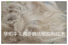 华炬新产品研究所技术咨询委员会科研人员现推荐一项牛毛两步酶法脱脂剂技术配方及工艺,该技术工艺将无机复合脱脂剂脱脂和生物酶脱脂相互结合,复合脱脂剂脱脂时在温度较高的碱性条件下进行,能够有效脱脂;生物酶脱脂则通过复合酶,能对牛毛进行更深入的脱脂,脱脂效果更为优化和深入;该工艺方法的工艺简单,脱脂效果好,对环境的威胁小。现将该牛毛两步酶法脱脂剂技术配方及工艺实施例介绍如下供研究参考:(311241 331266)