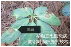 三七为五加科人参属多年生植物,是中国特有的名贵中药材,可用于治疗各种出血症及各种心脑血管等疾病。三七是典型的阴生C3植物,在遮阴条件下栽培,生长环境荫、湿,能导致多种病害的发生危害,圆斑病就是三七最为常见的一种病害,能为害植株各个部位,症状是在叶上产生圆形病斑,随后病斑合并叶片腐烂成腌菜状;叶柄和枝柄受害呈暗褐色水渍状缢缩并脱落;茎杆受害后病斑变褐折垂,病害发病株率几乎等于损失率。圆斑病病原菌为真菌半知菌类的槭菌刺孢霉,病菌在条件不适时会形成厚垣孢子并以厚垣孢子及菌丝越冬。圆斑病具有发生发展迅速、为害严重、损失巨大、防治难等特点。