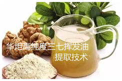 华炬科技新产品研究所技术咨询委员会科研人员现推荐一项高纯度三七挥发油提取技术工艺方法,该技术提取得到的三七挥发油具有提取比率高,然后经过萃取处理,所得到的三七挥发油纯度好的特点,满足进一步的研究应用的要求;提取三七挥发油具有良好的活性,能够作为三七挥发油的美容美白功效的研究基础原料应用,并可以进一步的加工成相应的美容美白产品,现将该高纯度三七挥发油提取技术工艺方法实例介绍如下供研究参考:(441231 671345)