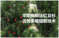 华炬新产品研究所技术咨询委员会科研人员现推荐一项酶解法红豆杉活性多糖提取技术工艺,该技术与现有技术相比,采用生物酶降解与回流 提取相结合的方法提取活性多糖,其利用生物酶在温和的条件下分解植物组织, 去除蛋白等成分,加速了多糖的释放速度,减少了工艺步骤,并缩短提取时间、 提高了提取率。另外,提取方法可降低能耗,并不会破坏多糖的生理活性,现将该酶解法红豆杉活性多糖提取技术工艺及实例介绍如下供研究参考:(271211 131516)