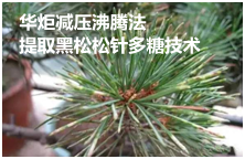 华炬新产品研究所技术咨询委员会科研人员现推荐一项减压沸腾法提取黑松松针多糖技术工艺方法,该技术中的黑松松针多糖作为具有多种生理功能和开发价值的活性多糖,具有对机体毒副作用小、无残留、不产生耐药性等优点,应用前景广阔;减压内部沸腾法能以实现渗入物料内部溶剂产生汽化的方式,改变传统提取过程的普通分子扩散方式为对流扩散的方法,有效解决了多糖分子量巨大,提取过程中分子扩散速率较慢,且易堵塞物料的内部孔道的不分离的减压内部沸腾法提取黑松松针水溶性多糖的方法,现将该减压沸腾法提取黑松松针多糖技术工艺方法及实例介绍如下供研究参考:(271211 123576)