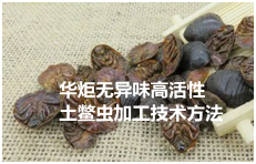 现有技术制成的土鳖虫活性低,异味特重,口感很差,直接影响病人的顺应性。提供一种高活性口感好的加工方法,十分必要。 华炬科技新产品研究所技术咨询委员会科研人员现推荐一项无异味高活性土鳖虫加工技术方法,该技术制得的土鳖虫生物活性高,口服无异味,病人的顺应性高,现将该无异味高活性土鳖虫加工技术方法及实例介绍如下供研究参考:(441231 844517)