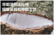 华炬科技新产品研究所技术咨询委员会科研人员现推荐一项溶剂法杜仲提取长丝杜仲胶工艺方法,该技术采用溶剂法从杜仲中提取长丝杜仲胶的方法,可以高效率地、完全地提取杜仲中的杜仲胶;获得原生态的杜仲胶,保持其原有的生物特性、物理性能和物理状态,保持原有的分子结构和聚合度。克服现有技术中在进行原料预处理时,经过机械破碎而破坏杜仲胶原有结构,大大地降低杜仲胶丝的拉伸性、韧性、弹性、结晶等宝贵性能的缺陷,可以提取出原生态的杜仲胶,保持其原有的生物特性、物理性能和物理状态,保持原有的分子结构和聚合度,现将该溶剂法杜仲提取长丝杜仲胶工艺方法及实例介绍如下供研究参考:(441231 651685)