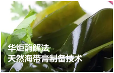 海带的营养价值很高,同时具有一定的药用价值。含有丰富的碘等矿物质元素。海带含热量低、蛋白质含量中等、矿物质丰富,研究发现,海带具有降血脂、降血糖、调节免疫、抗凝血、抗肿瘤、排铅解毒和抗氧化等多种生物功能。华炬新产品研究所技术咨询委员会科研人员现推荐一项酶解法天然海带膏制备技术方法,该技术制得的天然海带膏,风味自然、口感和谐、色泽鲜,海带口味鲜甜,醇厚。不仅保留了海带原有的色、香、味,而且提取率明显提高,营养成分丰富,现将该酶解法天然海带膏制备技术方法及实例介绍如下供研究参考:(341511 445534)