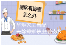 蟑螂目前已经是家庭生活卫生中一大公害,它不仅破坏了室内的环境卫生,给食品安全带来一定的危害,而且也极大的影响了家庭生活,然而,由于蟑螂超强的适应能力与繁殖能力,使其难以灭绝。且目前现有的蟑螂杀虫剂都难以起到令人满意的效果。 华炬新产品研究所技术咨询委员会技术人员现推荐一项家庭自配去除蟑螂杀虫剂技术配方及方法,该技术产品具有良好的杀虫效果,蟑螂吃后立即死亡,且对人体危害不大,使用后能够快速有效的杀死蟑螂,从而保证居家无蟑螂,配方简捷、应用简单、价格低廉、易于大面积推广,现将该家庭自配去除蟑螂杀虫剂技术配方及方法实例介绍如下供研究参考:(471651 231553)