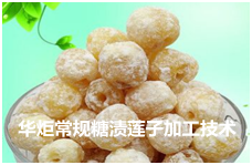 华炬新产品研究所技术咨询委员会科研人员现推荐一项常规糖渍莲子加工技术工艺,该技术产品色泽光润,香甜味浓,口感细腻、柔和,甜而不腻,具有莲子清香甘甜的风味。本产品营养价值很高,富含蛋白质和多种矿物质,有利于促进机体的新陈代谢,增强人体免疫功能,具有滋补养性、补气强心、健脾开胃、防癌抗癌的功效,是一种老少皆宜的营养佳品。操作简单,易于实施,现将该常规糖渍莲子加工技术工艺及实例介绍如下供研究参考:(211371  422679