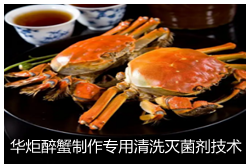 华炬新产品研究所技术咨询委员会科研人员现推荐一项醉蟹制作专用清洗灭菌剂技术配方及方法,该技术产品在清洗前用该华炬醉蟹制作专用清洗灭菌剂浸泡海蟹,利用该产品的杀菌和去腥作用,杀灭海蟹中的有害微生物,并延长保质期的醉蟹加工工艺,并去除其中产生腥味的含氮和含硫化合物,且完整保留了海蟹原有的营养成分,保证醉蟹的食品安全和风味特点,现将该醉蟹制作专用清洗灭菌剂技术配方及方法实例介绍如下供研究参考:(341341 671245)