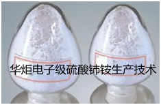 华炬新产品研究所技术咨询委员会科研人员现推荐一项电子级硫酸铈铵生产技术工艺,该技术与现有技术相比具有如下优点:在一定的温度、pH和压力下进行浓缩结晶,在这样的条件下蒸发结晶,使硫酸铈铵晶体粒径增大,比表面积就会减小,对其它离子的吸附减低,更能甩掉其他金属离子杂质,离心脱水获得电子级的硫酸铈铵。制备的碳酸铈产品中,非稀土的金属杂质离子含量非常低,Fe、Ca、Na、K、Pb、Zn、Mn、Al、Cu、Ni、Co、Cr<0.00005%,现将该电子级硫酸铈铵生产技术工艺及实例介绍如下供研究参考:(511271 421556)