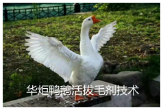 华炬新产品研究所技术咨询委员会科研人员现推荐一项鸭鹅活拔毛剂技术配方及方法,该技术产品鸭鹅活拔毛剂,该剂使用时操作方便,对鸭鹅刺激少,拔毛顺利,拔毛后鸭鹅能较快恢复常态,对鸭鹅的生长摄食无不利影响,现将该鸭鹅活拔毛剂技术配方及方法实例介绍如下供研究参考:(311371 421595)