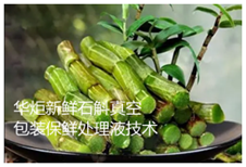 针对上述技术问题华炬科技新产品研究所技术咨询委员会科研人员现推荐一项新鲜石斛真空包装保鲜处理液技术配方,该技术产品为了提高石斛的保鲜期,更好地保持石斛特有的性状和营养物质,以新鲜石斛为原料,依次经过预处理,保鲜溶液浸泡,离心脱水,低温真空处理,包装,得石斛成品。新鲜石斛采用低温真空处理的方法,可以有效抑制石斛中转化酶、果胶酶等的活性,从而可使石斛中的营养物质不发生降解,并保持石斛的口味与石斛原植物一致,保鲜期可达250天,不会使铁皮石斛的性状发生改变,也不会降解石斛所含的营养物质;采用食品级的辅料进行加工石斛,安全可靠,不会对人体造成损害,现将该新鲜石斛真空包装保鲜处理液技术配方及方法介绍如下供研究参考:(441321 231255)