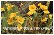 针对短棒石斛标本叶片、茎、根等部位变软、变烂、折损严重,甚至脱落,华炬科技新产品研究所技术咨询委员会科研人员针对上述技术问题现推荐一项多肉植物短棒石斛浸渍标本硬化剂技术配方,该技术产品的使用与短棒石斛标本中的果胶酸作用生成果胶酸钙,果胶酸钙能在细胞间隙里使细胞相互粘连,使新鲜短棒石斛标本硬实挺拔,提高浸渍效果,能使短棒石斛标本长期保持原有形态、色泽、质地,能达到形象逼真、立体感强、色泽鲜艳的效果,现将该短棒石斛浸渍标本硬化剂技术配方及方法介绍如下供研究参考:(441321 231285)