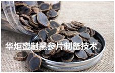 华炬科技新产品研究所技术咨询委员会科研人员现推荐一项蜜制黑参片制备技术方法,该技术以黑参为原料的蜜制黑参片新产品,由于黑参原料人参符合卫生部公告批准的可作为普通食品生产的新资源食品,所以可作为普通方便食品生产和销售;解决了黑参食用不便、口感欠佳的问题;由于改变了传统的蜜制方法,采用了烘法黑参蜜制工艺,便于操作,温度容易控制,能够保证炮制品的质量,现将该蜜制黑参片制备技术方法及实例介绍如下供研究参考:(441221 621535)