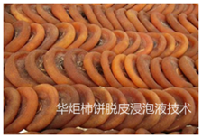 柿子饼一般的制作工艺为柿子经脱涩、脱皮、硬化、脱色、糖煮、糖渍、干燥而成,柿子脱皮是柿子饼的重要技术措施,华炬新产品研究所技术咨询委员会科研人员现推荐一项柿饼脱皮浸泡液技术配方,现将该技术配方介绍如下供研究参考:(241271 263575)