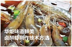 传统的虾,只是煮着吃,或炒着吃,品种不多,味道也单一。华炬新产品研究所技术咨询委员会科研人员现推荐一项味道鲜美卤醉虾制作技术方法,该技术卤醉虾的制作方法,是让虾饮用酒后成为醉虾后再加卤料加工而成的,味道鲜美,营养非常丰富,现将该味道鲜美卤醉虾制作技术方法及实例介绍如下供研究参考:(341311 597388)