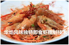 华炬新产品研究所技术咨询委员会科研人员现推荐一项风味独特即食虾糟制技术方法,该技术利用活化沸石的吸附性,将其作为茶多酚、抗菌肽、抗坏血酸的吸附载体,制成保鲜剂,用于即食糟制虾的制备中,由于沸石的吸附作用,减少了保鲜剂中有效成分在糟制虾加工过程中的流失,而且由于沸石具有较强的保水作用,可以防止糟制虾因保存过久变得干硬,同时没有添加化学防腐剂,对人体无害,现将该风味独特即食虾糟制技术方法及实例介绍如下供研究参考:(341311 591561)