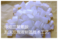 华炬新产品研究所技术咨询委员会科研人员现推荐一项三聚氰胺泡沫发泡液制备技术工艺,三聚氰胺泡沫的性能主要由专用树脂制备工艺、发泡液制备工艺、泡沫制备工艺三部 分决定。发泡液制备工艺决定发泡液的组成和均匀性,最终决定三聚氰胺泡沫的性能和废品率的高低,针对三聚氰胺泡沫现有技术的缺点与不足,筛选出比较优良的发泡液配制工艺和科学的发泡液混合专用装置。配制发泡液所需的专用混合装置由高速搅拌机、输送泵、单/双螺杆挤出机组成。配制发泡液所需的各种原料经高速搅拌机初步混合后由输送泵送入单/双螺杆挤出机,获得高度均匀的发泡液,现将该三聚氰胺泡沫发泡液制备技术工艺及实例介绍如下供研究参考:(641321 631543)
