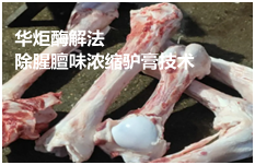 华炬新产品研究所技术咨询委员会科研人员现推荐一项酶解法除腥膻味浓缩驴膏技术,该技术主要成份是以驴骨架为原料的浓缩物,富含蛋白质和钙、磷等成份,具有丰厚、优美的滋味和丰富的营养,十分有利于人体健康;充分利用了骨资源,生产成本低,造福社会,提高人民生活水平和营养水平,也为动物骨架等原料资源的综合利用提供了更大的空间。产品中除含有各种复杂的鲜味成分外,还保留了骨中天然的香气成分并具有浓厚的口感,现将该酶解法除腥膻味浓缩驴膏技术及实例介绍如下供研究参考:(311741 333589)