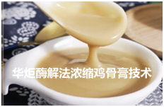 华炬新产品研究所技术咨询委员会科研人员现推荐一项酶解法浓缩鸡骨膏技术方法,该技术产品主要成份是以鸡骨架为原料的浓缩物,富含蛋白质和钙、磷等成份,具有丰厚、优美的滋味和丰富的营养,十分有利于人体健康;充分利用了骨资源,生产成本低,造福社会,提高人民生活水平和营养水平,也为鸡骨架等原料资源的综合利用提供了更大的空间。产品中除含有各种复杂的鲜味成分外,还保留了骨中天然的香气成分并具有浓厚的口感。是一种口感好、成本低、营养丰富的浓缩鸡膏,现将该酶解法浓缩鸡骨膏技术方法及实例介绍如下供研究参考:(311311 347518)