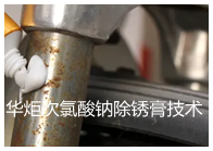 金属制品长期跟空气接触后会氧化生锈,生锈后会大大降低金属制品的使用寿命,而且使用生锈的金属制品可能会带来安全上的各种隐患;通常人们常用的除锈手段为打磨,这样做虽然在一定程度上缓减了锈迹,但也会破 换金属制品原来的样子。华炬新产品研究所技术咨询委员会科研人员现推荐一项次氯酸钠除锈膏技术配方及方法,该技术产品在使用时只需将膏体擦拭在生锈处,轻轻一抹即可,使用方便,并且携带贮存都很简单,现将该次氯酸钠除锈膏技术配方及方法实例介绍如下供研究参考:(841133 121547)