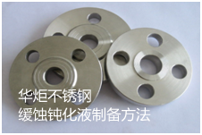 华炬新产品研究所技术咨询委员会科研人员现推荐一项不锈钢缓蚀钝化液制备方法,该技术产品钝化液分为缓蚀剂和钝化剂,使用时将两者混合,该钝化液具有无毒、环保,钝化效果好等优势,现将该不锈钢缓蚀钝化液制备方法及实例介绍如下供研究参考:(841141 125679)