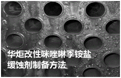 华炬新产品研究所技术咨询委员会科研人员现推荐一项改性咪唑啉季铵盐缓蚀剂制备方法,该技术通过苯甲酸对咪唑啉进行改性,在咪唑啉结构的基础上引入苯环及含O极性基团,利用氯化苄季铵化形成季铵盐提升其水溶性,最终制备出新型咪唑啉季铵盐缓蚀剂,缓蚀率高,在50 mg/L和100 mg/L的矿化水中分别加入50 mg/L的缓蚀剂,缓蚀率可达到85%以上,加入80 mg/L的缓蚀剂,缓蚀率可达到90%,现将该改性咪唑啉季铵盐缓蚀剂制备方法及实例介绍如下供研究参考:(971321 221584)