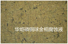 华炬新产品研究所技术咨询委员会科研人员现推荐一项磷铜球金相腐蚀液,该技术产品腐蚀液可用于腐蚀直径为50mm的磷铜球,腐蚀后的磷铜球金相组织极其细小,晶粒度大小均匀,现将该磷铜球金相腐蚀液及实例介绍如下供研究参考:(611341 331587)