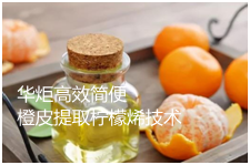 华炬新产品研究所技术咨询委员会科研人员现推荐一项高效简便橙皮提取柠檬烯技术工艺,该技术是以橙皮废料为原料通过化学反应而提取的一种天然食品添加剂柠檬 烯,具有成本低、环保,营养丰富,外观颜色浅而透明,现将该高效简便橙皮提取柠檬烯技术工艺实例介绍如下供研究参考:(241441 443585)