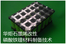 华炬新产品研究所技术咨询委员会科研人员现推荐一项石墨烯改性磷酸铁锂材料制备技术方法,该技术产品改性磷酸铁锂电池材料工艺先进,原材料来源广泛,价格低廉,具有放电容量大,无毒性,不造成环境污染,寿命长等优点,保证了动力电池产业化的一致性和续航能力。该磷酸铁锂正极材料,其首次放电容量达165 mAh/g ;其充放电平台相对锂电极电位为3.5V 左右,初始放电容量超过179mAh/g,100 次充放电循环后容量约衰减2.7%左右,现将该石墨烯改性磷酸铁锂材料制备技术方法介绍如下供研究参考:(811311 231557)