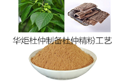 华炬科技新产品研究所技术咨询委员会科研人员现推荐一项杜仲制备杜仲精粉工艺方法,该技术通过不同的提取工艺分别从杜仲的绿色叶片、嫩枝、种子和杜仲树皮中提取出有效成分,然后再通过特殊的工艺进行混合处理,最后将得到的混合液蒸干得到有效成分混合的精粉,不仅最大程度的利用了杜仲的叶子、嫩枝、种子和树皮,不会造成资源上的浪费,提高了杜仲精粉的提取产量,而且最终得到的杜仲精粉也兼具四者的药用功能和保健功能,极大丰富了杜仲的用途,提高了杜仲的经济价值;使用杜仲精粉替代常规的杜仲,可以使有效成分能够更加快速和高效的起到保健和治疗的功效,现将该杜仲制备杜仲精粉工艺方法及实施例介绍如下供研究参考:(441231 651656)
