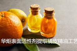 华炬新产品研究所技术咨询委员会科研人员现推荐一项表面活性剂提取橘皮精油工艺方法,该技术和现有技术相比的优点是:①精油收率高,表面活性剂的渗透、乳化、增溶作用,降低了橘皮中精油的残存量,增大了橘皮中精油分散到表面活性剂水溶液中的分散量。采用本方案,提取橘皮中的精油的收率较现行压榨法高15~20%。②表面活性剂可循环使用,降低了生产成本;采用主、辅表面活性剂复配,主、辅表面活性剂的协同效应,降低了表面活性剂的用量。③方案中所用表面活性剂不易挥发、沸点高,蒸馏时不易被蒸馏出来混入精油中,从而提高了精油的纯度。④萃取的液固比小,不仅缩短了蒸馏时间,降低了能耗,而且所得精油和水的混合物中精油的浓度高,有利于油水分离。⑤工艺简单,易于操作。⑥生产过程无污染,环保,清洁,现将该表面活性剂提取橘皮精油工艺方法及实施例介绍如下供研究参考:(241441 421593)