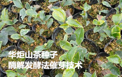 华炬新产品研究所技术咨询委员会科研人员现推荐一项山茶种子酶解发酵法催芽技术,该技术催芽方法,方法简单,快速高效,山茶种子的催芽率达到98%,催芽时间缩短为4~5天,成活率达到96%,经济收入提高11.3%;清水浸泡除去干瘪种子,软化种皮,酶解能够进一步的破坏山茶种子的种皮结构,促进营养成分进入,加快种子发芽;种子经发酵,破坏种皮和休眠物质,提高胚芽抗逆性,提高成活率;种子置于催芽箱,逐渐调节催芽条件,喷洒壳聚糖溶液保持湿度,增加壳聚糖的应用途径,提高胚芽抗逆性,加快胚芽生长,缩短发芽时间,现将该山茶种子酶解发酵法催芽技术及实施例介绍如下供研究参考:(271241 141517)