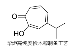 桧木醇,扁柏酚,化学名称为2-羟基-4-(1-甲基乙基)-2,4,6-环庚三烯-1-酮,分子式为C10H12O2,分子量为164.2,它是从台湾扁柏的树干中提取的一种具有卓酚酮骨架的单萜类的天然化合物,属托酚酮族化合物,具有良好的抗菌性、保湿性和害虫忌避效果,是高安全性的植物成分,可作为抗菌剂、防虫剂。桧木醇是台湾扁柏精油的主要成分,具有较为广泛的生物活性,有强力的杀菌能力,对一般细菌的最小抑菌浓度为10~100ppm,气味芬芳而且效果良好,能杀死空气中的细菌、真菌、防止害虫侵害人体、抑制人类病源菌。目前已经用于生产沐浴露、化妆品、医药、农业等产品。桧木醇对抑制金黄色葡萄球菌(MRSA)有惊人的效果,该菌常存于人体皮肤、呼吸道,引起败血症、腹膜炎、食物中毒及疮疖脓疡等皮肤感染。另外,桧木醇在土传病害方面的防治上具有突出的效果。