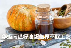 华炬新产品研究所技术咨询委员会科研人员现推荐一项南瓜籽油超临界萃取工艺方法,该技术有益效果是:超临界流体CO2萃取,提取温度较低,热别适用于热敏性有效成份的提取,传质速率快,萃取效率高,工艺流程简单,过程易于调节,CO2惰性无毒,容易从萃取产物中分离出来,南瓜籽碎料料渣可作为农田肥料,产品中无溶剂残留等,现将该南瓜籽油超临界萃取工艺方法及实施例介绍如下供研究参考:(211341 271538)