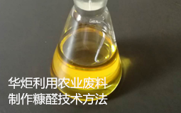 华炬新产品研究所技术咨询委员会科研人员现推荐一项利用农业废料制作糠醛技术方法,该技术有益效果在于提供了一种能耗低,工艺简单的由农业废料制备糠醛的方法。本方法设备简单,原料便宜易得,并且反应条件相对传统方法较为温和,现将该利用农业废料制作糠醛技术方法及实施例介绍如下供研究参考:(511361 421534)